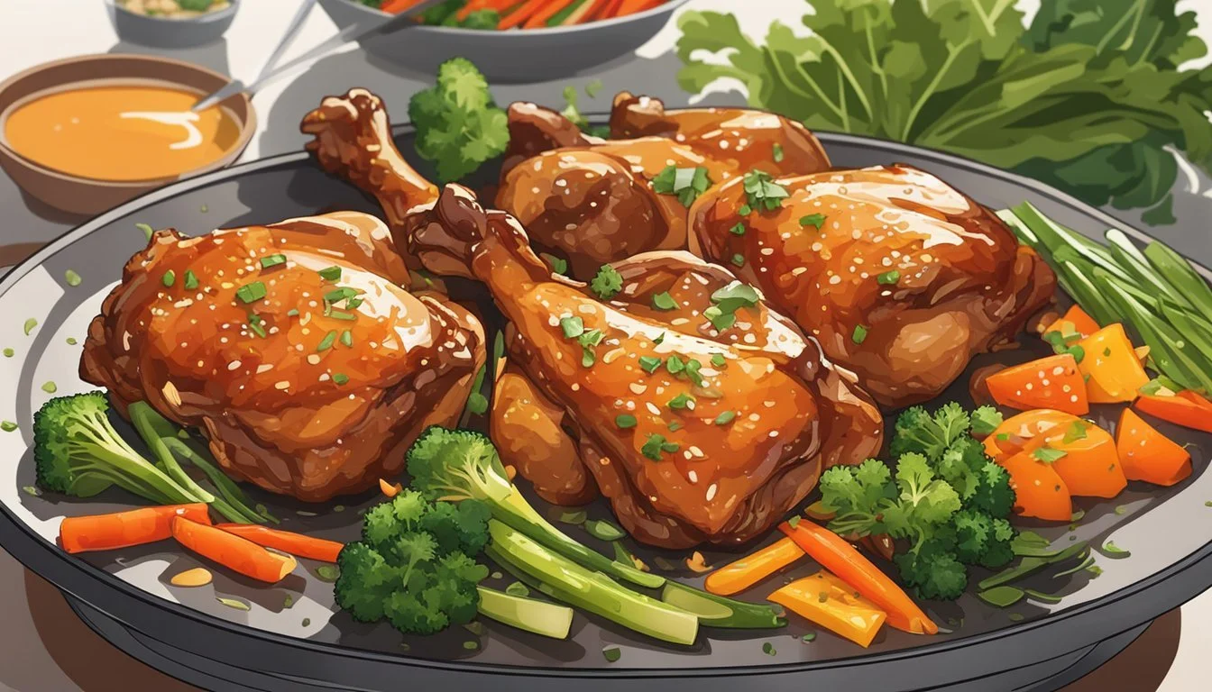 When presenting the succulent Asian-Glazed Chicken Thighs, one should consider complementary side dishes that complete the meal both in flavor and nutrition, as well as garnishes that add a pop of both flavor and visual appeal.