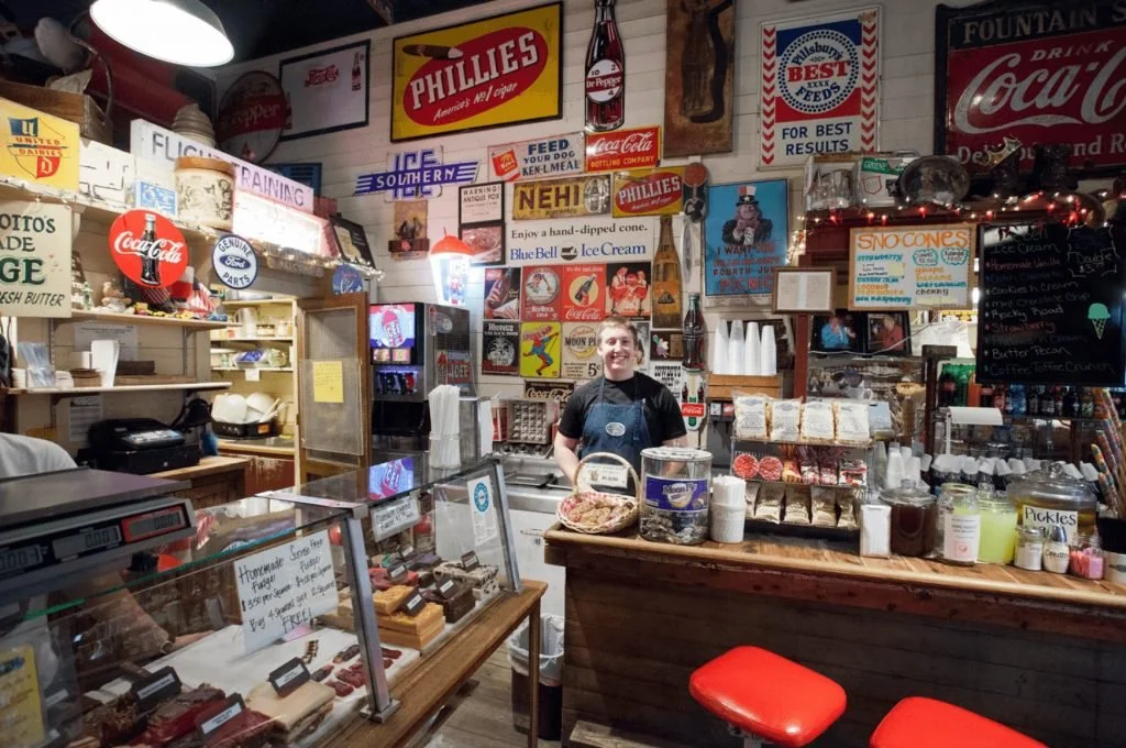 Souvenirs, gifts, gourmet coffees, memorabilia, Texas music, and a soda fountain with homemade fudge, candies, sodas, ice cream, and their famous 5-cent coffee. They also have limited edition Honey Butter spreads in different flavors that are sure to hit your fruity spot!