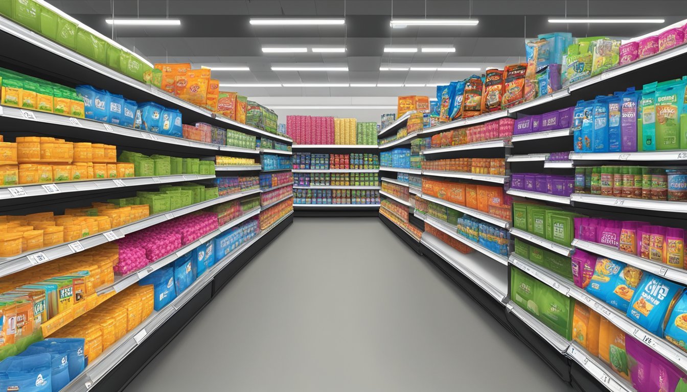 Five Below specializes in low-cost snacks, candy, and limited pantry items, all priced at $5 or less. Their selection focuses on name-brand treats in smaller package sizes.