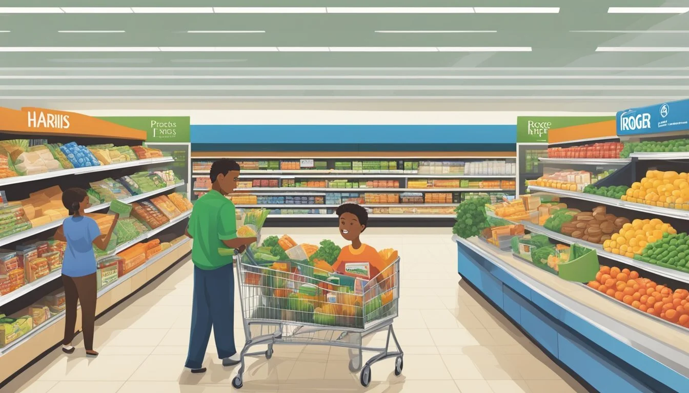 Private Label Range: Brands like 'Harris Teeter Organics' are prominently featured alongside conventional choices.