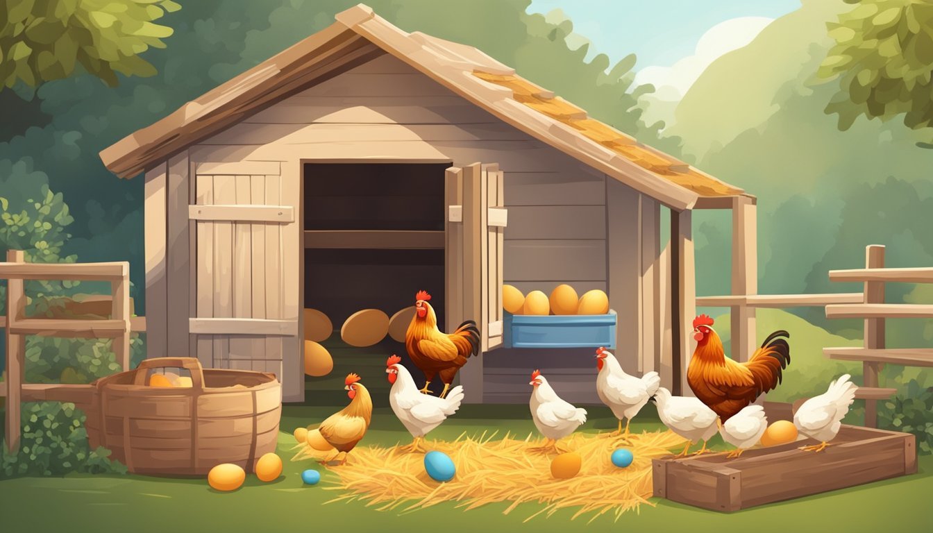 Once chicks hatch, they require a brooder with a controlled heat source, as they cannot regulate their body temperature. The temperature should start at 95°F and decrease by 5°F each week until it matches the ambient temperature or the chicks are fully feathered. Feeders and waterers should be accessible for chicks, providing a starter feed with 18-20% protein content. As the chicks grow into pullets and near the point of laying, they can be introduced to the existing flock, ensuring that the coop offers a minimum of four square feet per bird to prevent crowding and stress.