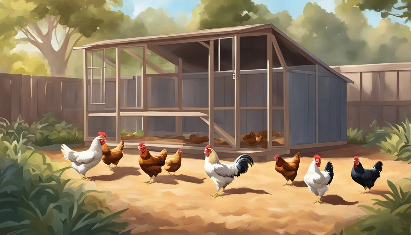 When setting up a chicken coop in Chino, CA, the poultry enthusiast must consider the location, coop design, and essential features for the health and safety of the chickens. The right balance of space, protection, and airflow contributes to a thriving backyard flock.