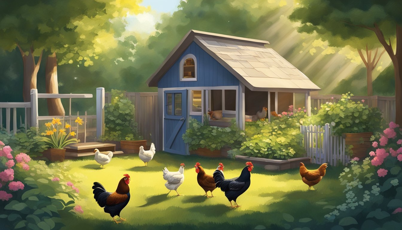 Chickens can contribute to a backyard garden's ecosystem. Their manure can be composted and is an excellent fertilizer, rich in nitrogen, which enhances soil quality. The gardening process involves rotating the chickens in different garden areas to allow them to forage, which naturally tills the soil and controls pests.