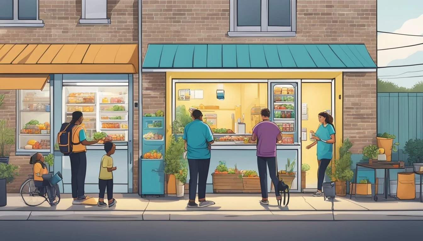 Community fridges in New Braunfels, TX, function as a hub for food sharing, where individuals can donate perishable and non-perishable items, and those in need can take what they require without any cost. This system relies on a collective effort from the community for both stocking and accessing food.