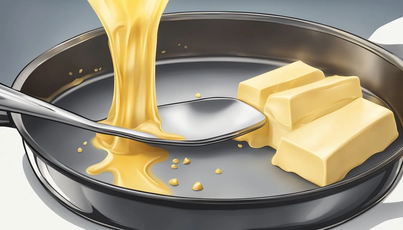 Melting butter is another technique that can enhance the flavor of dishes. To melt butter properly, avoid overheating it to the point at which it starts to smoke, as this can ruin its taste and reduce its nutritional value. When melting butter, one should heat it slowly; this helps in separating the milk solids, which settle at the bottom, leaving a clear liquid on top. This clarified butter, stripped of milk solids, can offer a higher smoke point which is preferable for high-heat cooking methods.