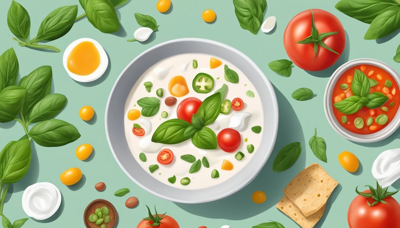 Begin by combining ripe tomatoes, fresh basil, and Greek yogurt in a blender. The Greek yogurt not only thickens the gazpacho but also provides a tangy flavor that pairs well with the tomatoes.