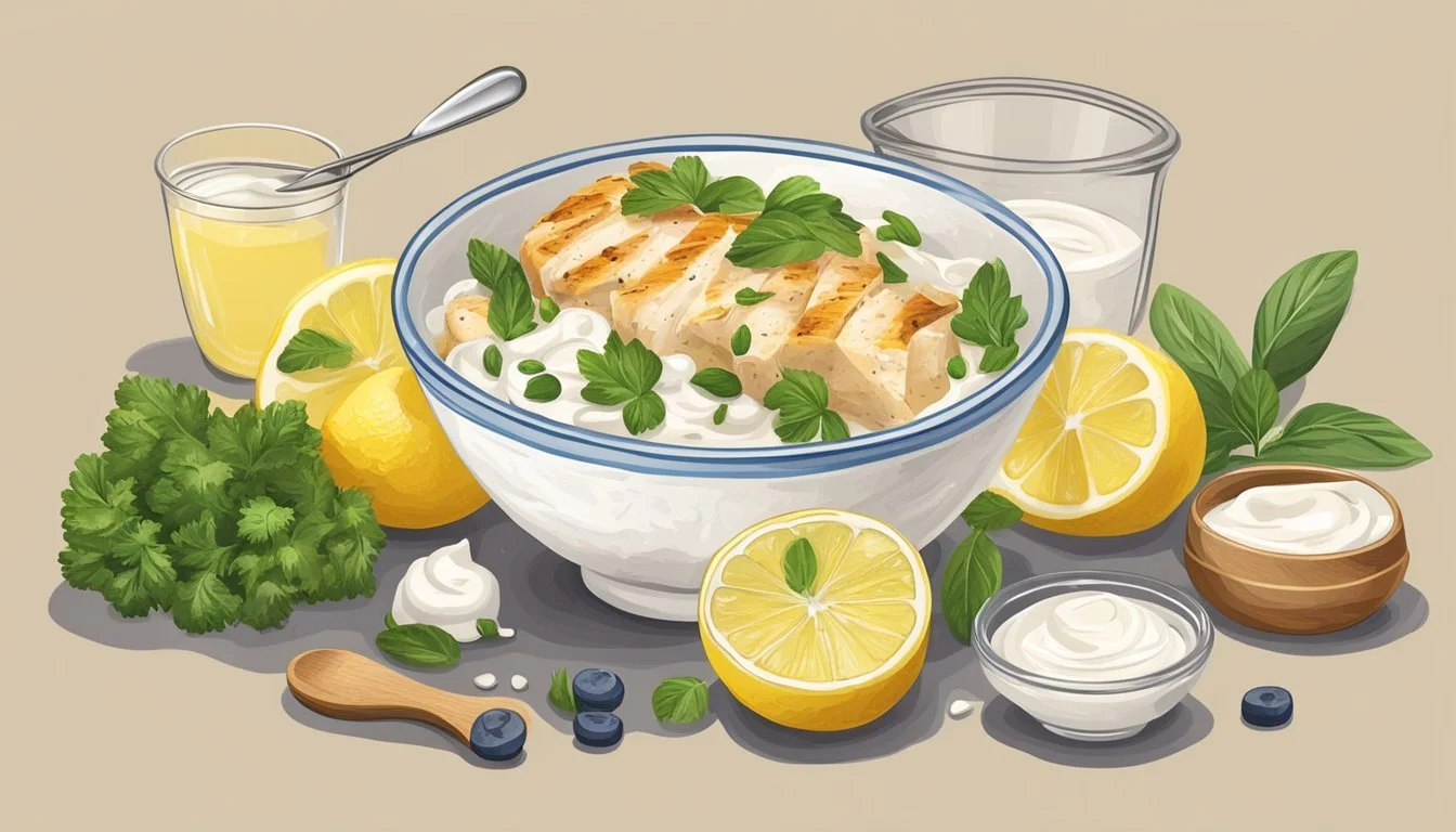 Greek yogurt and lemon make a perfect marinade for chicken, offering a balance of tangy and savory flavors. The yogurt tenderizes the chicken, making it more juicy and flavorful.