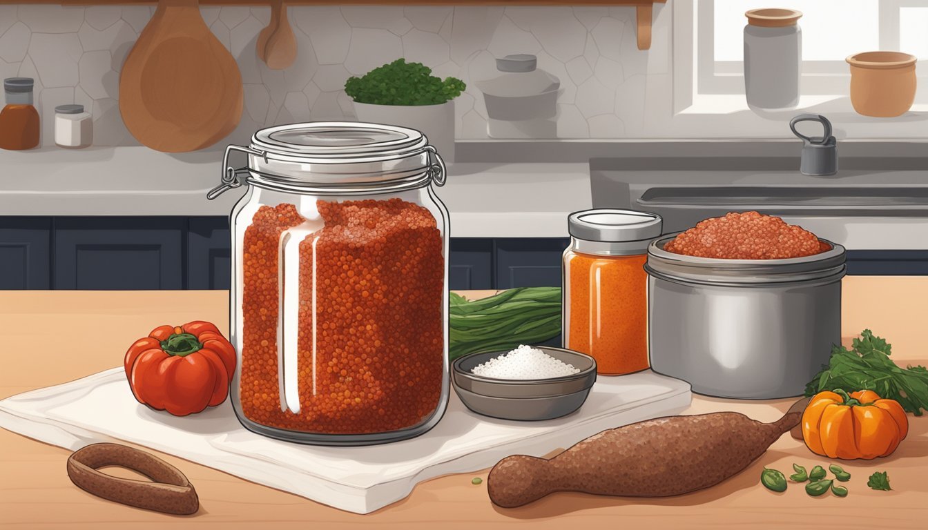 To commence fermentation, a starter culture is introduced to the 'Nduja mixture. Typically, this culture is composed of bacteria that produce lactic acid, which lowers the pH of the sausage, enhancing its safety and contributing to the unique tangy taste. The mixture, already seasoned with chili peppers, is then encased and placed in a controlled environment. The temperature is critically managed, often kept just above the standard refrigeration range, to support the bacteria's activity without cooking the sausage. Humidity is also regulated to ensure proper fermentation.