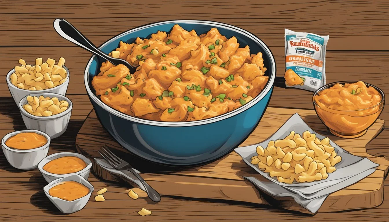 Another variant is the Banquet Mega Bowls Nashville Hot Chicken, which features spicy fried chicken over mac and cheese. This variant is known for its intense heat and crispy chicken, offering a different texture and spice level compared to the Buffalo-Style Chicken Mac 'n Cheese.