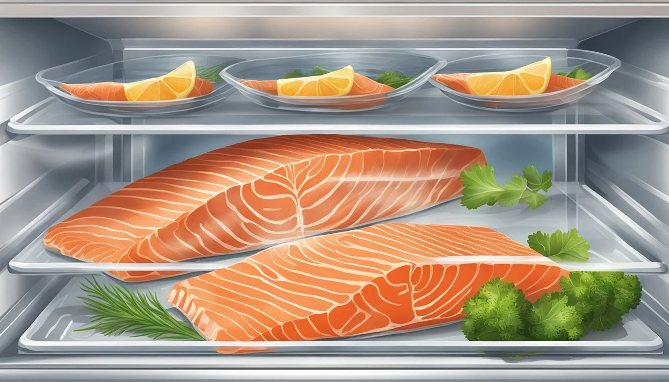 To effectively store salmon in the freezer for long-term use, one should first clean, pat dry, and prepare the fish appropriately. The salmon should then be placed in a freezer bag or wrapped tightly, ideally with a vacuum seal, to prevent freezer burn and oxidation. Labeling is essential; it is recommended to mark each package with the freezing date.
