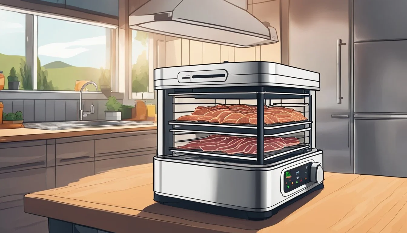 Throughout dehydration, it's important to monitor the process to avoid uneven drying. Checking the jerky periodically allows one to ensure that the air flow is not obstructed and the meat is drying uniformly. Use a timer to track duration and make adjustments to the temperature if needed. After the initial phase, one might reduce the temperature to 145°F (63°C) to continue the drying process more gently.
