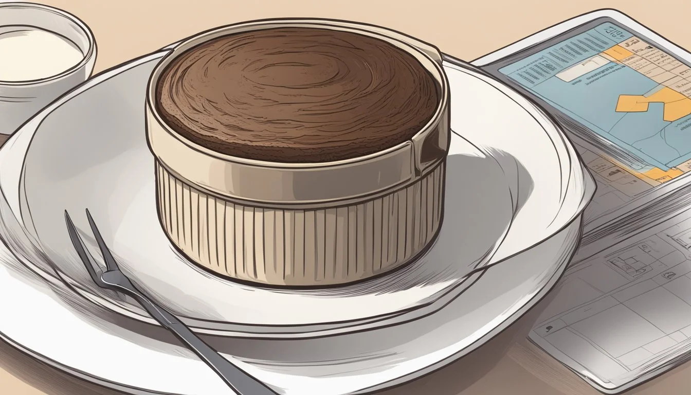 When reheating a chocolate soufflé, it's essential to consider its nutritional impact. Typically, a chocolate soufflé contains sugar and calories that could affect one's dietary plan. For a general analysis, a single cup serving of chocolate soufflé can have approximately 351 calories. These caloric measurements are critical for individuals tracking their daily intake for weight management or health reasons.