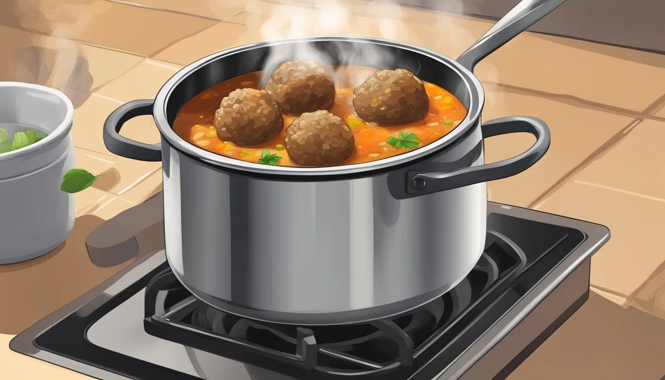 For stovetop reheating, the individual should pour the leftovers into a large pot and set the heat to a low-medium setting. It's crucial to let the soup reach a simmer—not a boil—to avoid toughening the meatballs. During the process, stirring occasionally helps distribute the heat evenly. This method typically secures the meatballs' tenderness and ensures the soup reaches an adequate serving temperature.