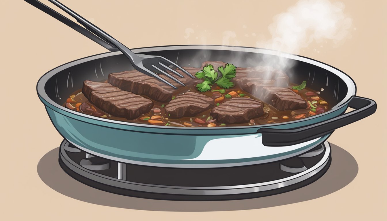 Before placing the barbacoa in the skillet, adding a small amount of liquid such as beef broth or water is advised to keep the meat moist. As the barbacoa reheats, one might consider adding a bit of oil or butter for richness and to aid in the even heating process. Stirring occasionally helps to distribute the heat and flavors. Seasonings can be added to restore some of the barbacoa's vibrant flavors if necessary.