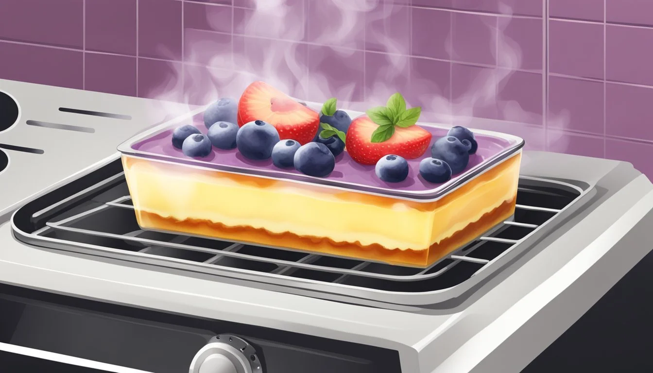 When reheating clafoutis, it's crucial to employ methods that maintain its custardy texture and the integrity of its fruit flavor. The goal is to achieve a dessert that is slightly warm, enhancing the dish's overall taste and comfort.