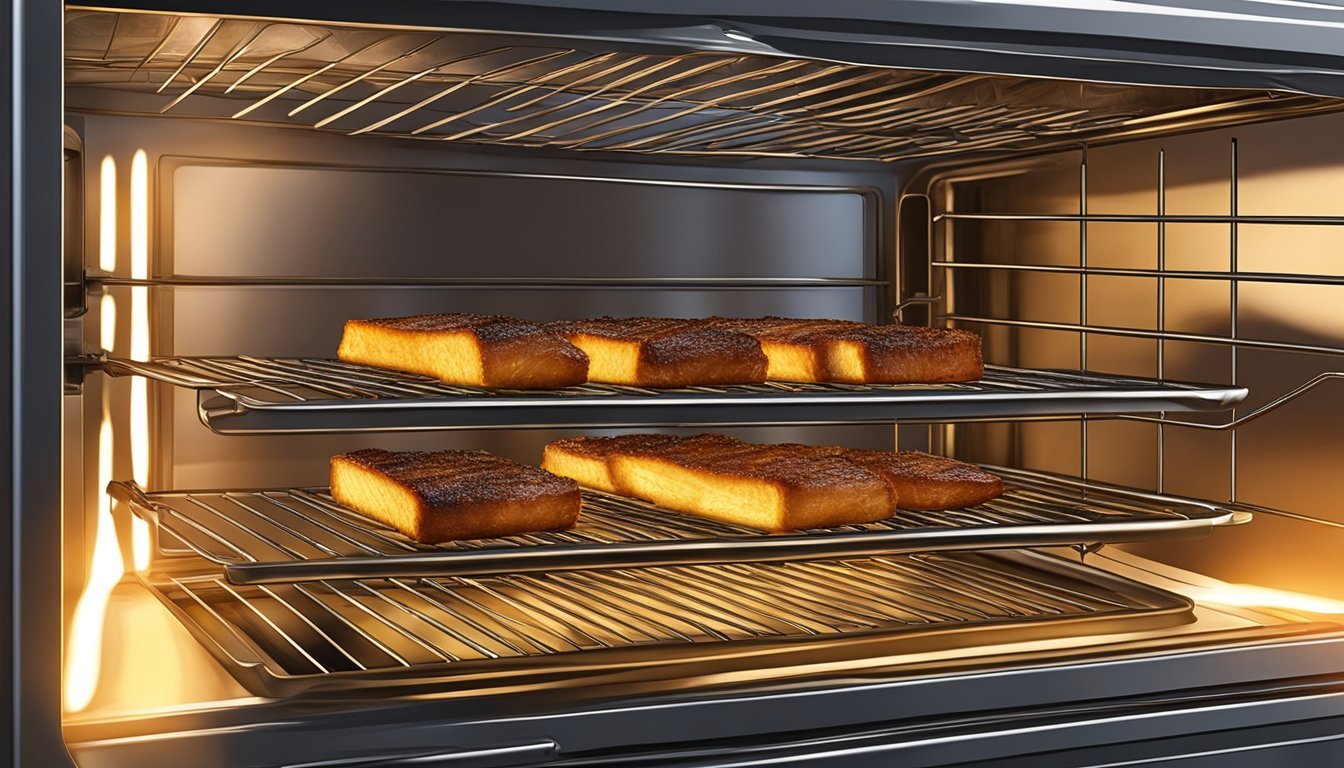 Using an oven is an effective way to reheat pork belly, achieving an even distribution of heat. Preheat the oven to 400°F and place the pork belly on a roasting pan or baking tray. If the pork belly is of uneven thickness, using a roasting rack can help circulate the heat. Cover the meat portion with aluminum foil to protect it from drying out, leaving the skin exposed to keep it crispy. The typical cook time ranges from 10 to 15 minutes, but one should always check the internal temperature with a thermometer to ensure it reaches a safe and palatable level.