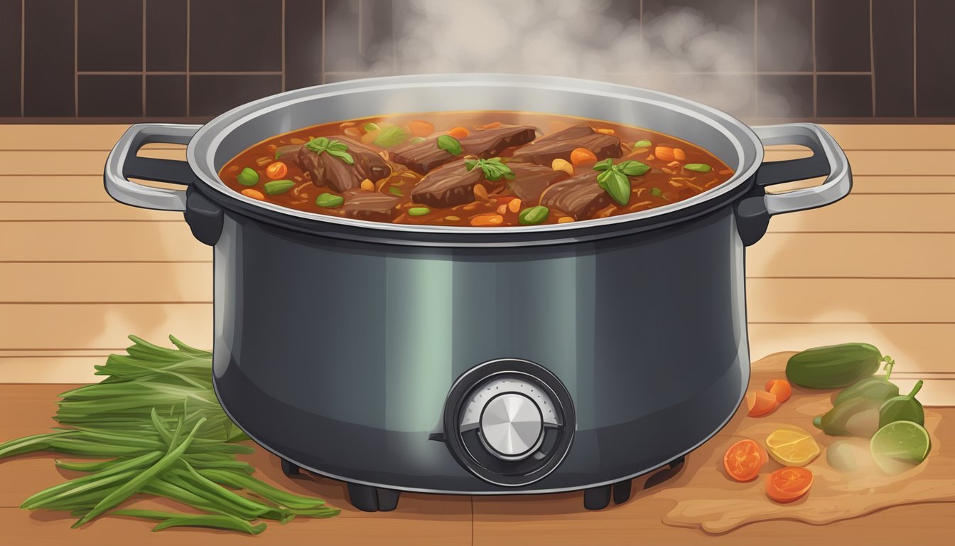 The key to achieving tenderness in Ropa Vieja is slow cooking. A Dutch oven is the cookware of choice for its heavy bottom and tight-fitting lid, which distribute heat evenly and retain moisture. This method allows the brisket to cook gently and consistently. The meat should simmer in the sauce for several hours, letting the connective tissue break down without drying out the beef, ensuring each shred is moist and flavorsome. After the meat has reached the desired tenderness, it is then shredded and returned to the sauce to soak up more flavor before serving.