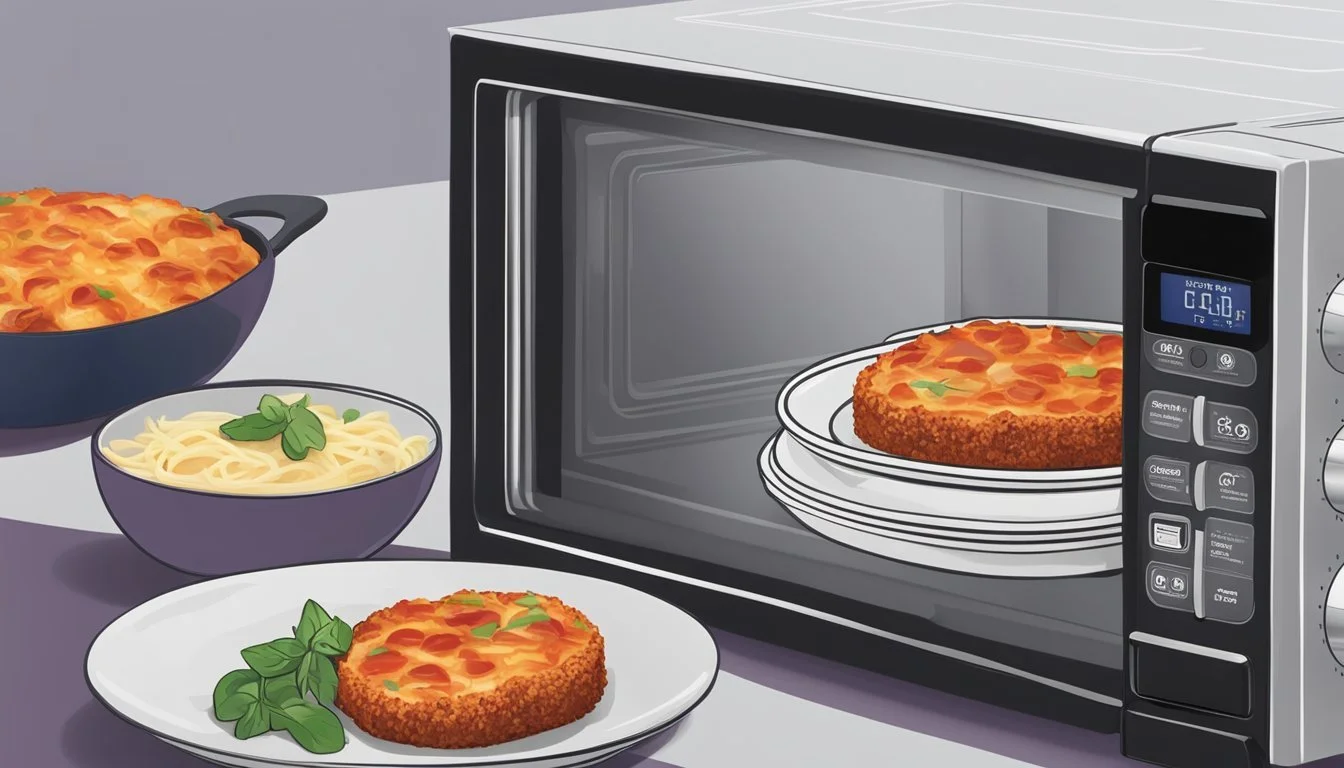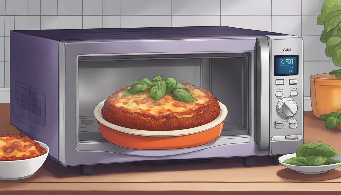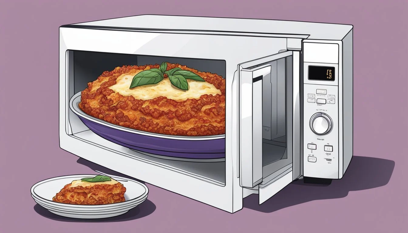 For a quicker alternative, the microwave does the job efficiently. Transfer the eggplant parmesan to a microwavable container and cover it with a lid slightly askew. Heat on medium power for 2-3 minutes, checking to ensure it is heated evenly.