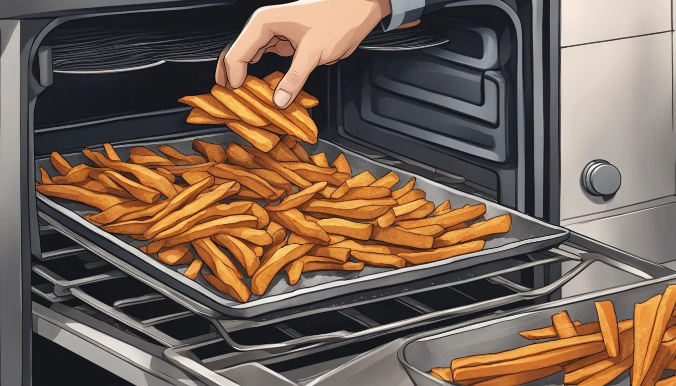 This arrangement ensures that each fry is exposed to the oven's heat, contributing to a consistent, crispy finish.