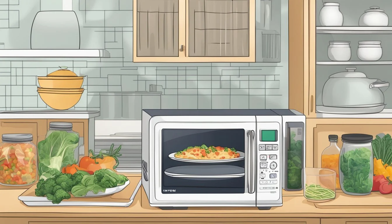 Another convenient method is using a microwave. Place a serving in a microwave-safe dish, sprinkle it with a bit of water or sauce, cover it, and heat on medium for a minute. Check to see if it's warm throughout, and if needed, heat for an additional 30 seconds to a minute.