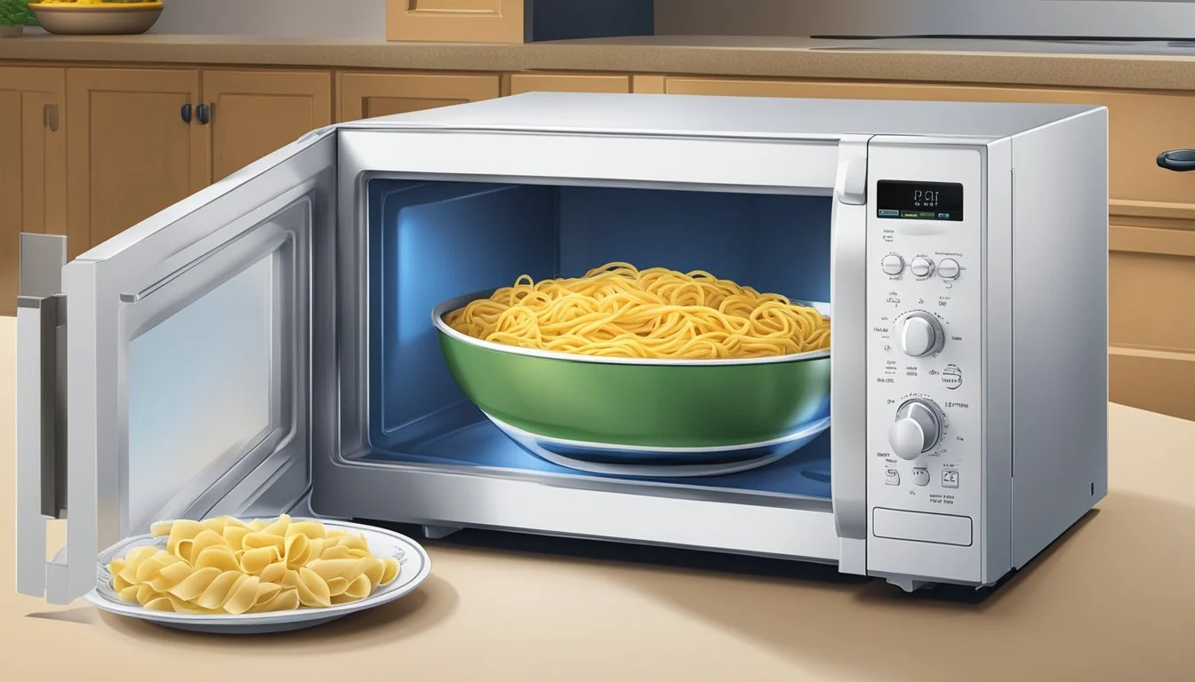 For microwave reheating, loosely cover the pasta and heat it for 1 to 1 ½ minutes. Stir halfway to ensure even heating.
