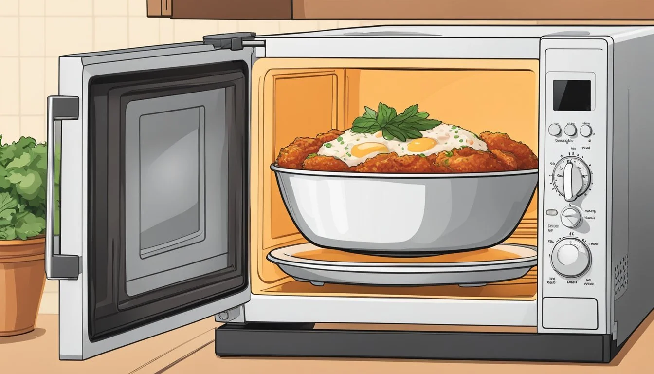 If using a microwave, set it to medium power and cover the Chicken Parmesan with a microwave-safe lid. Heat in short increments of 30-60 seconds, checking frequently to avoid overheating. This method is quick but can risk altering the texture.
