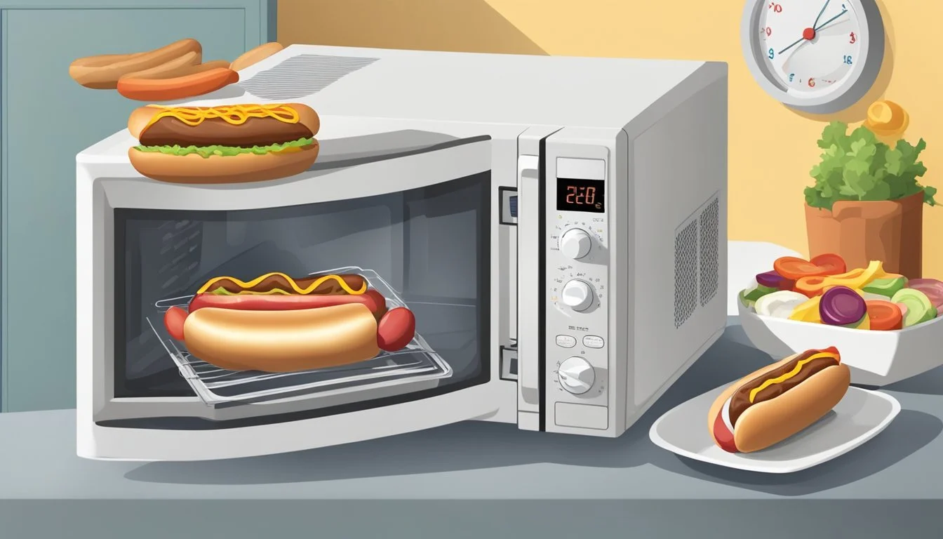 Reheating frankfurters in the microwave is quick and efficient. This method ensures the hot dogs are evenly reheated without drying out, maintaining a moist and warm texture.