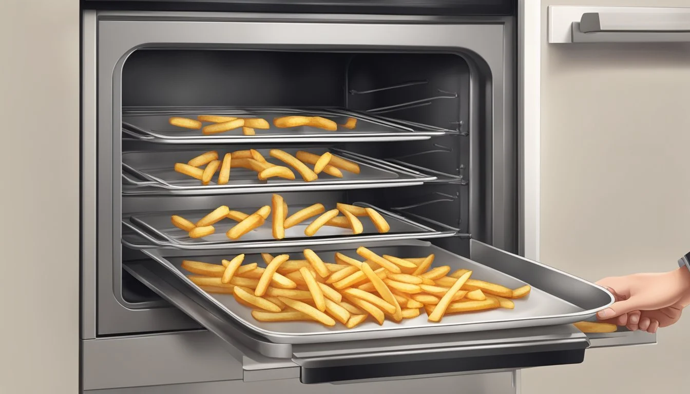 3. Spread Fries in a Single Layer: Arrange the fries on the baking sheet, ensuring they do not touch. This promotes even reheating.