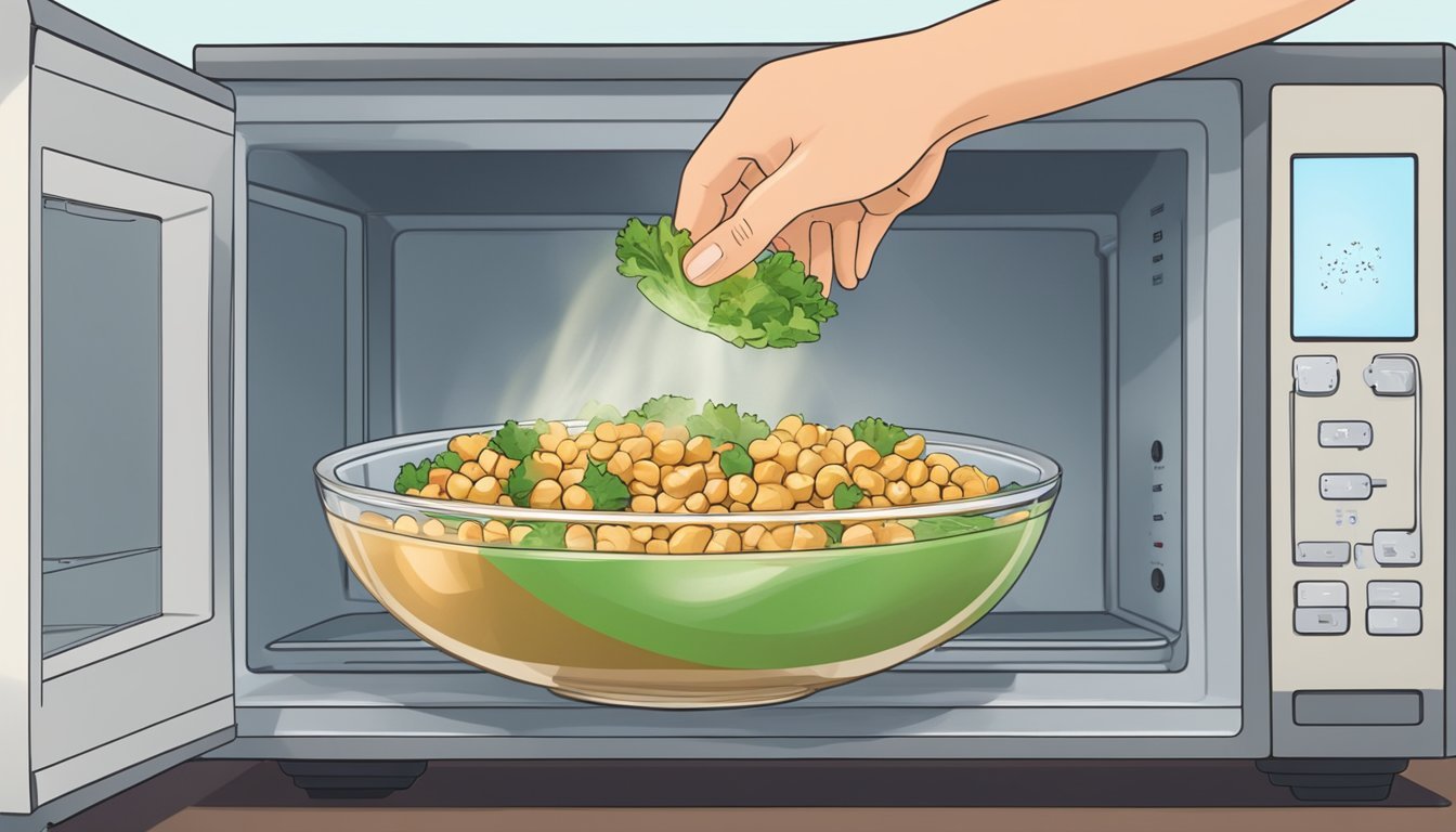 Using a microwave to reheat chickpea salad is quick and convenient. Place the salad in a microwave-safe bowl. Sprinkle a few drops of water or vegetable broth over the salad to maintain moisture and cover it with a microwave-safe lid or plate.