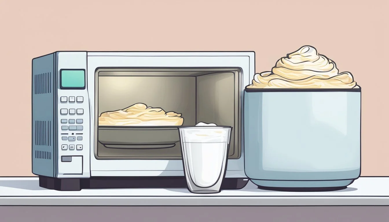 Microwave and Stand Mixer: One method involves briefly microwaving the yogurt to soften it and then using a stand mixer to whip it until smooth.