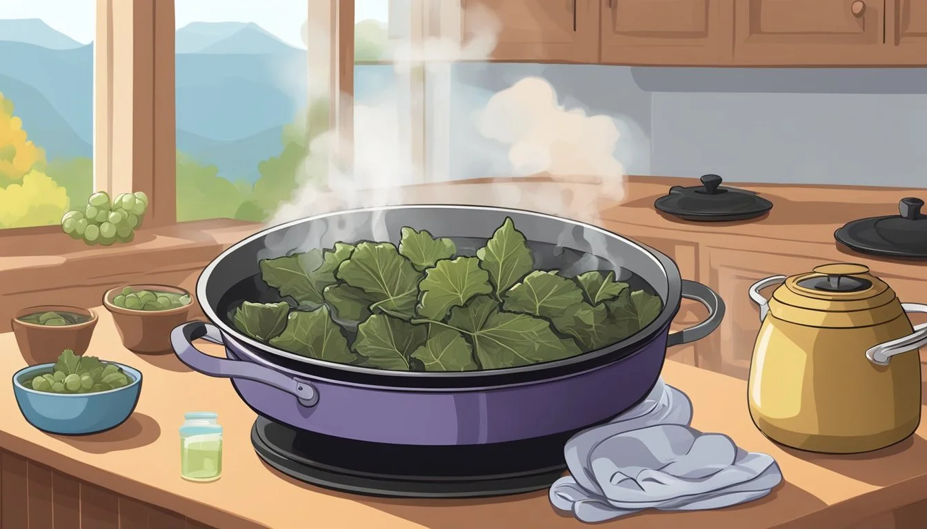 Rinsing and Blanching Grape Leaves