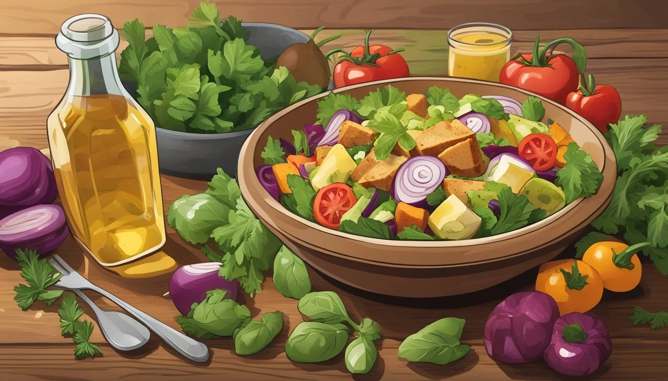 The creation of a Texas-style Panzanella salad's vinaigrette is pivotal to its flavor profile. It blends the classic components of vinaigrette with Texan-inspired twists for a distinctive finish.