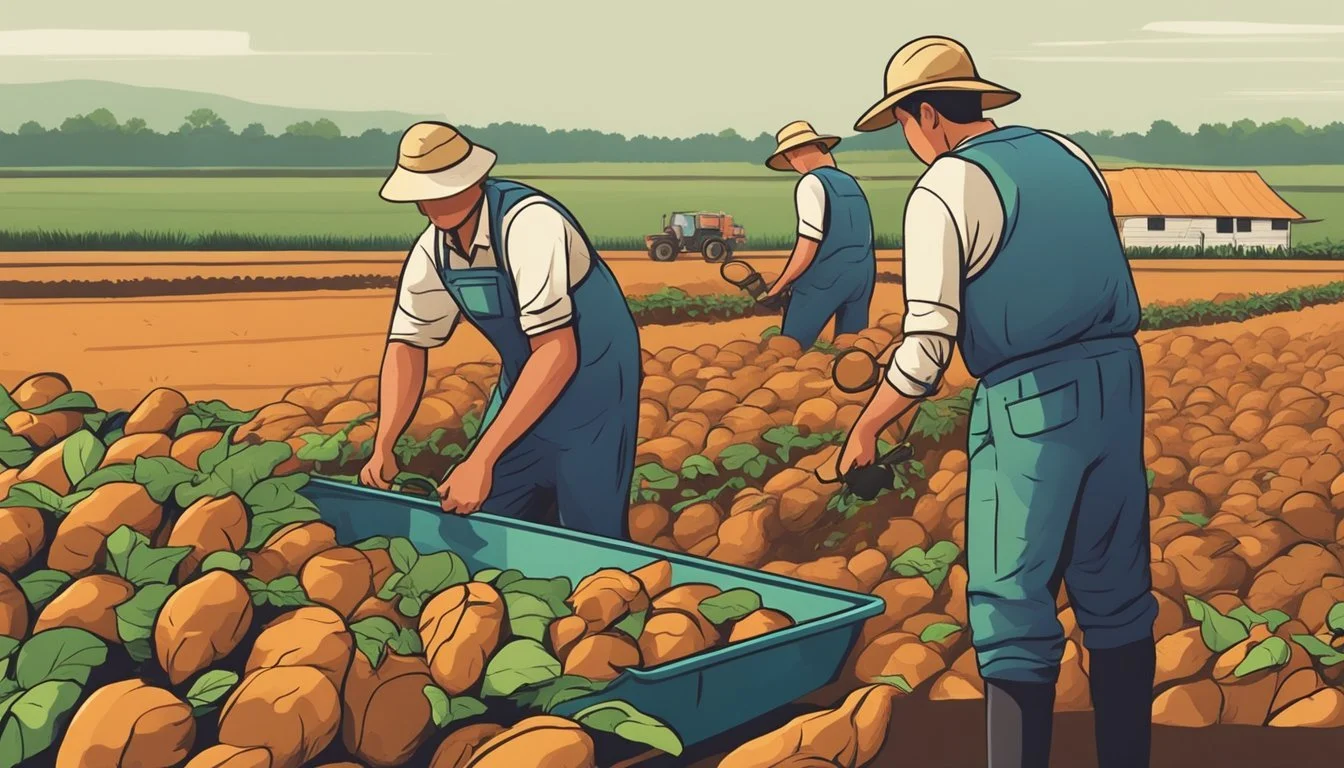 When harvesting sweet potatoes, it's crucial to avoid damaging the tubers, as cuts and bruises can decrease their marketability and increase the risk of disease. Deep plowing is recommended to loosen the soil and reduce the risk of damaging the tubers during harvest. Harvesting should be performed in dry conditions, as wet soil can complicate the process and potentially harm the sweet potatoes. It's also advisable to use certified transplants and to ensure that any planting material is not infected to prevent future pest problems.