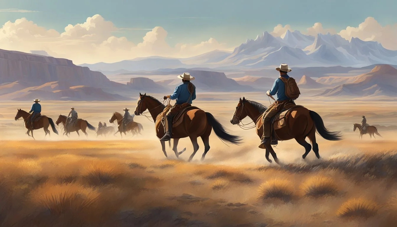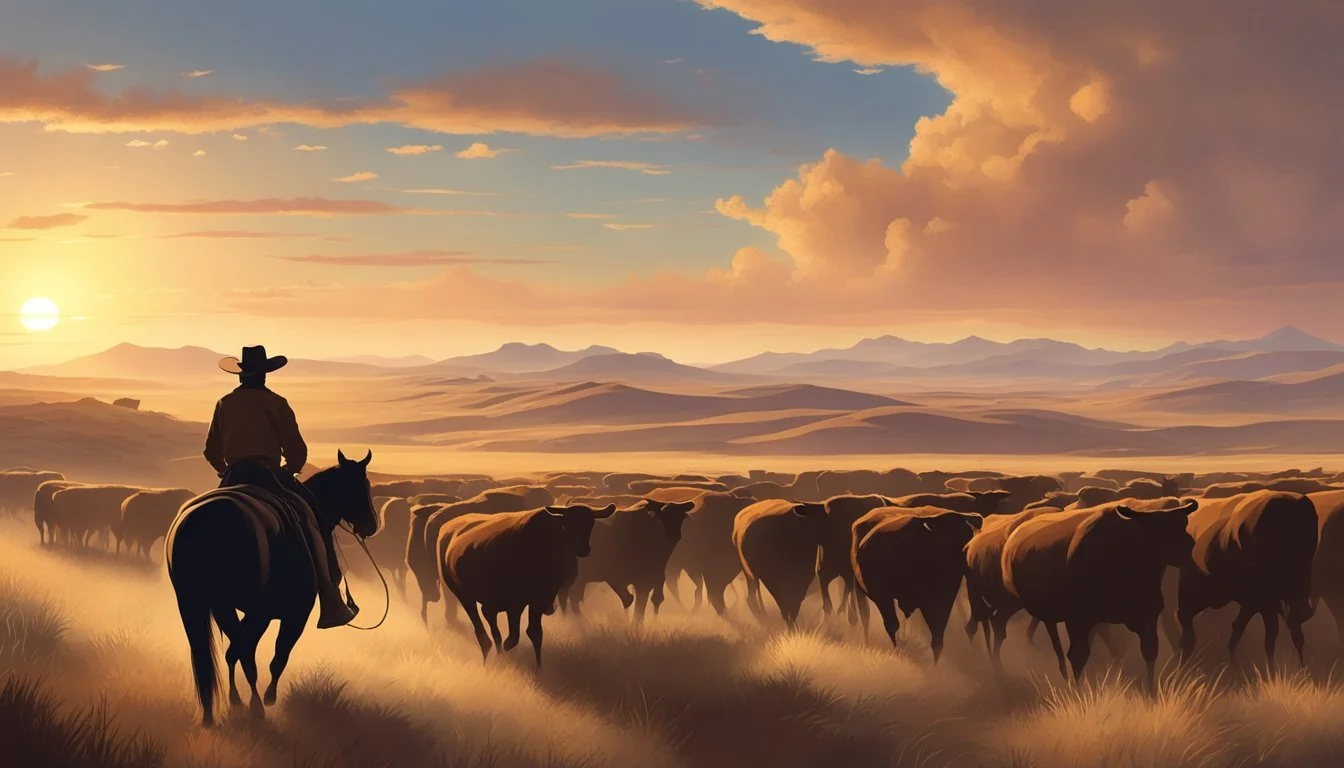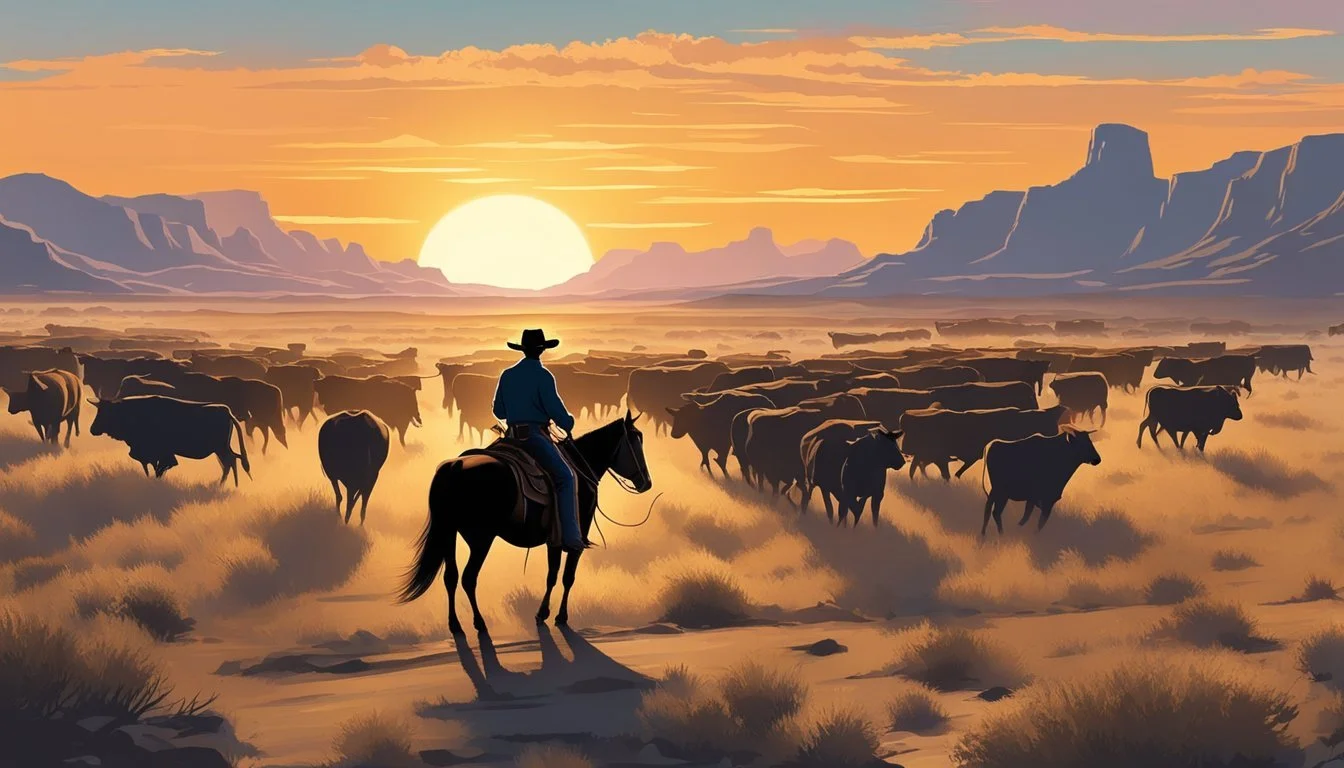 Legends such as Pecos Bill personify the grandiose nature of cowboy tales, weaving the everyday life of cattle driving with fantastical elements. Although Pecos Bill is a fictional character, his stories capture the essence of the cowboy spirit that Texas is known for. Cowboys in Texas were more than just cattle herders; they were trailblazers and horsemen who played a significant role in pioneering the Western frontier. Their lifestyle was a response to the practical needs of the time, as in the 1870s and 1880s, when long cattle drives to railheads in Kansas were common.