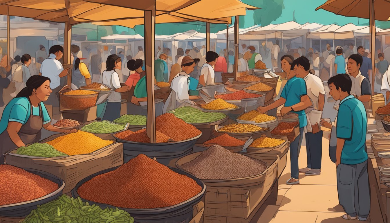 During festivals, such as the Guelaguetza, which is a celebration of culture and diversity in Oaxaca, chapulines become a ubiquitous sight. Vendors at markets and street corners in Oaxaca City offer these crispy treats, seasoned primarily with chili, garlic, and a spritz of lime juice. Tourists and locals alike can often be found enjoying chapulines as an on-the-go snack, indicative of the region's street food culture.