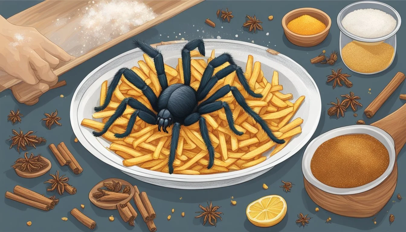 The preparation of fried tarantulas begins with a thorough cleaning, after which they are commonly marinated in a mixture that might include sugar, salt, and light seasoning. The spiders are then fried until they achieve a golden, crispy exterior. The result is a snack that is crunchy on the outside and soft on the inside, with a flavor that has been compared to a cross between chicken and cod.