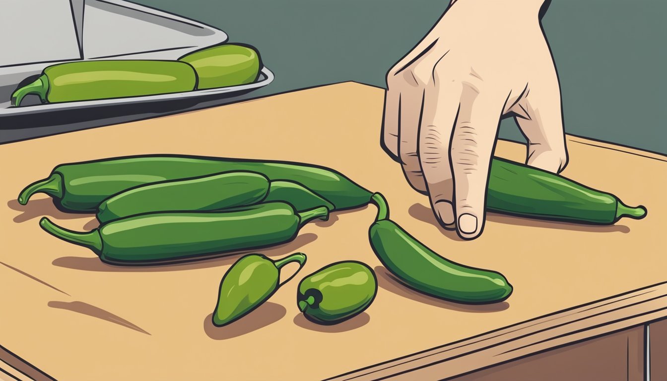 The chef should wear gloves when handling jalapenos to prevent skin irritation. They must rinse the peppers thoroughly before slicing to ensure cleanliness. To match serrano's smaller size, one should finely dice the jalapeno. This not only approximates the texture but also disburses the heat more evenly throughout the dish.