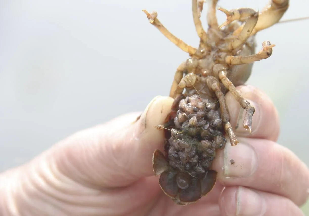 Although using Crawfish as bait is common, their species of animals are hardly the only ones affected. By introducing a new species of crawfish into a new ecosystem, other species of different animals are also assisted in the migration. One of the most notable contenders being the zebra mussel. They attach themselves to crawfish until they get too large, then use their foot to break off and find a new home to feed off of microorganisms floating in the water.