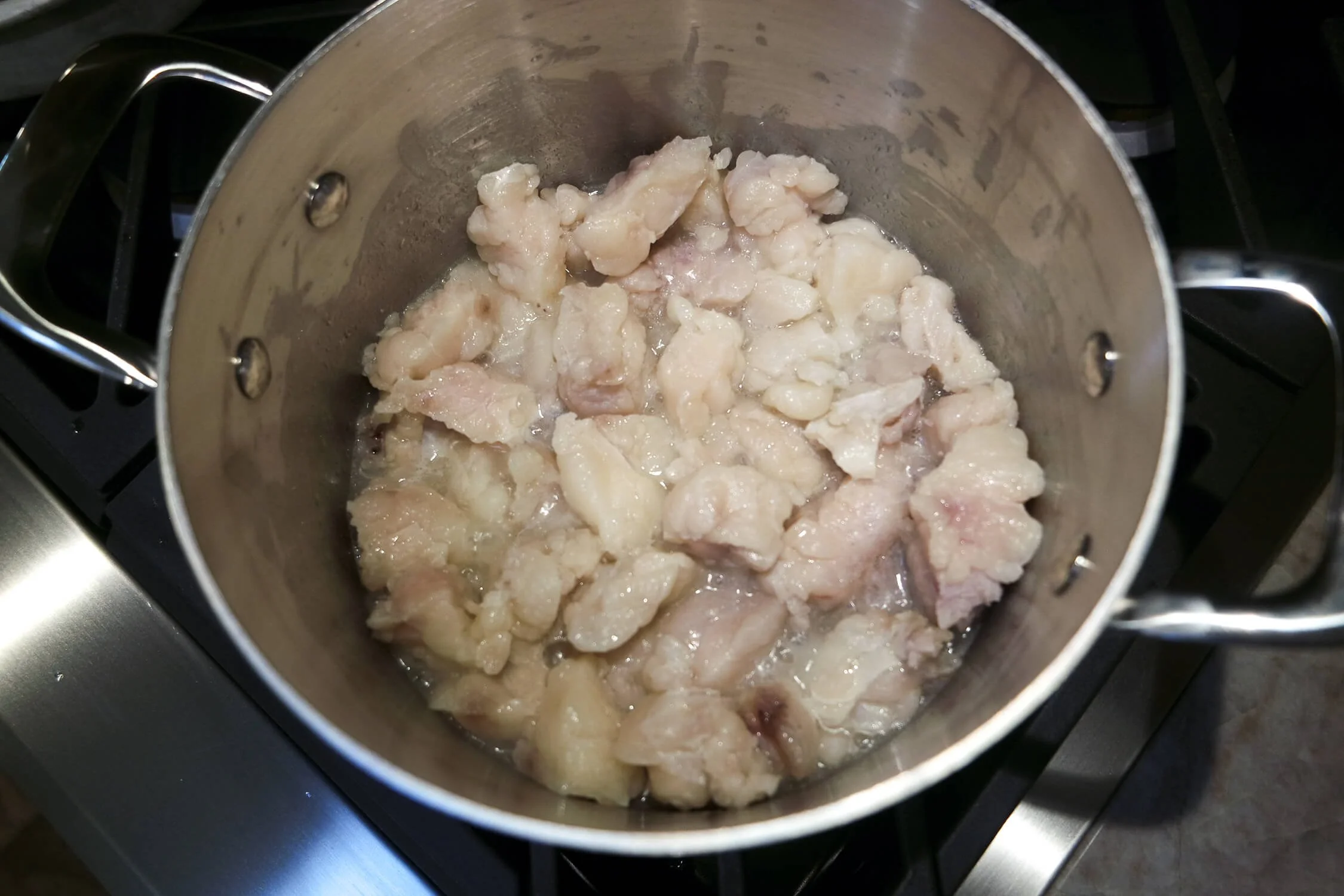 Melting: As the fat is heated, it gradually melts. The temperature must be kept low to avoid burning or browning the fat.