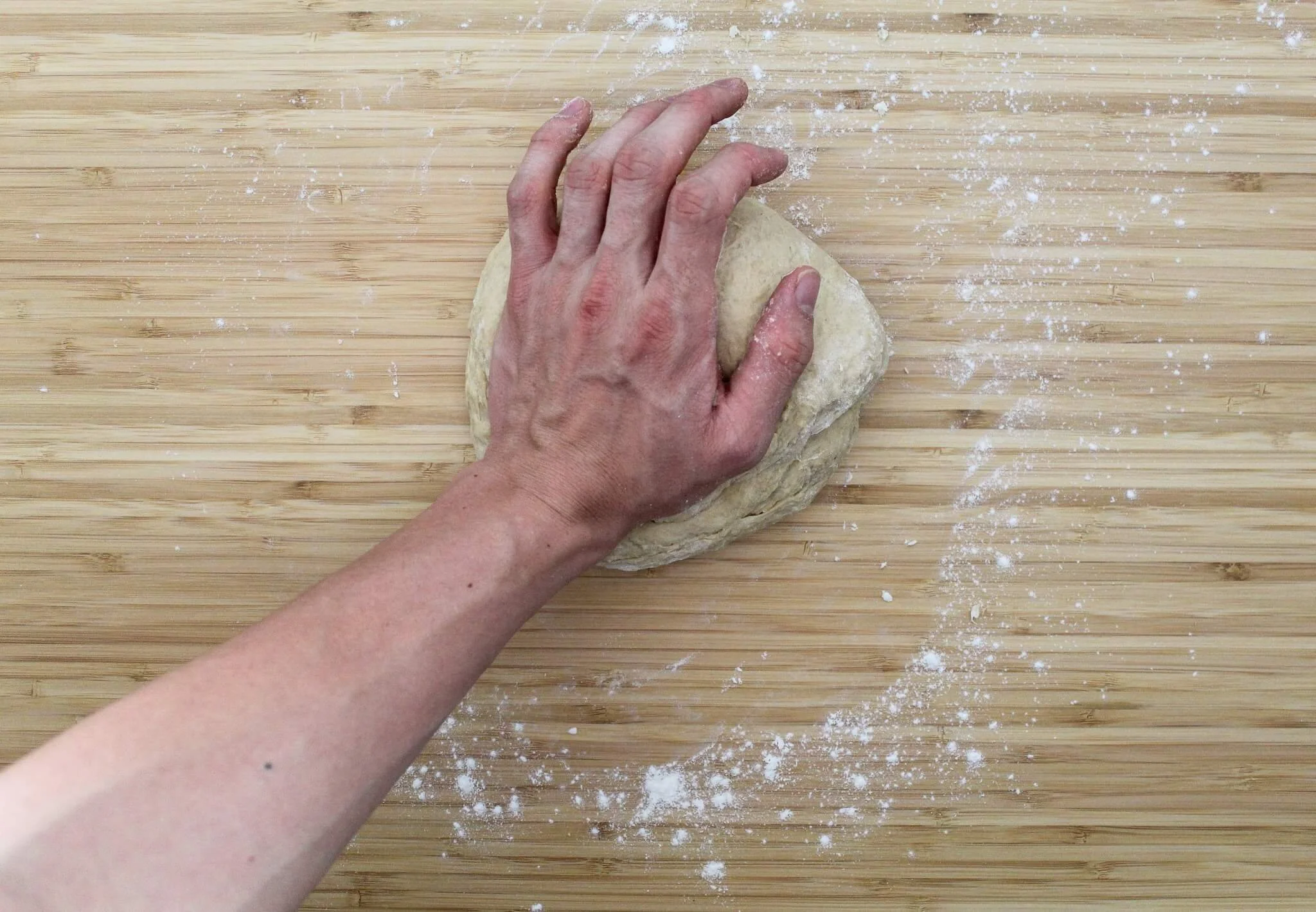 - Knead the dough for 6-8 minutes until strong then cover with a tea towel and leave it to rest for 15 minutes