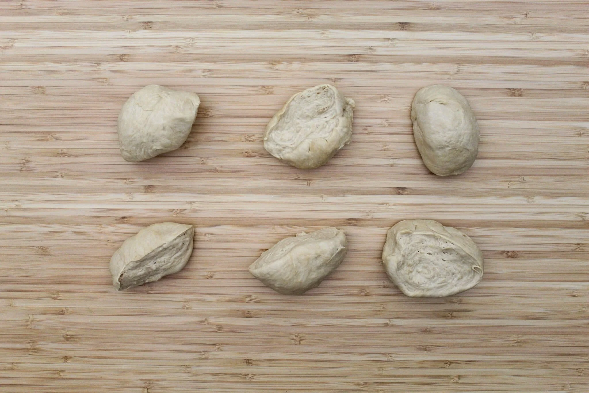 - Divide the dough into 6 even pieces to prep for shaping. While you shape each piece cover the rest with a damp tea towel so they don’t dry out