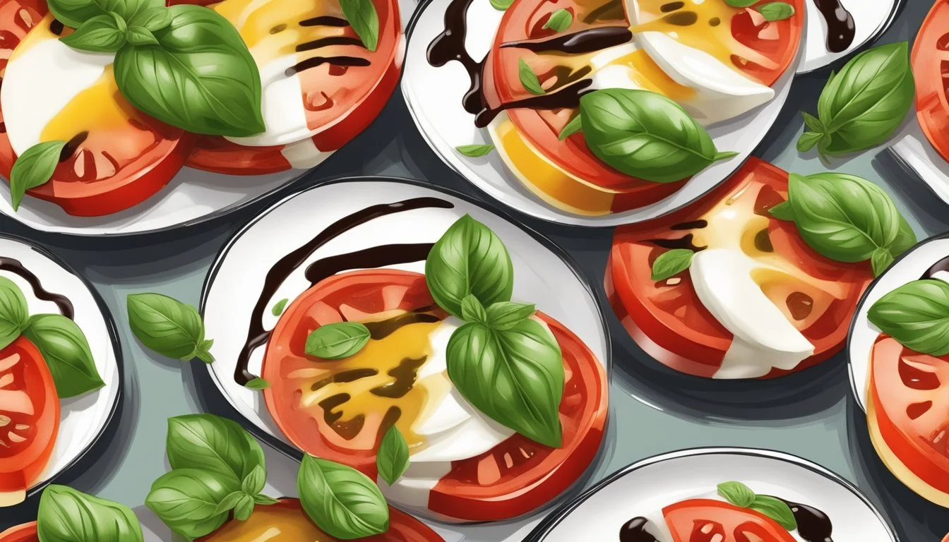 Caprese salad is an Italian staple revered for its simplicity and the freshness of its ingredients. It is paramount in Caprese salad to use high-quality components and honor the traditional colors of the Italian flag: red, white, and green.