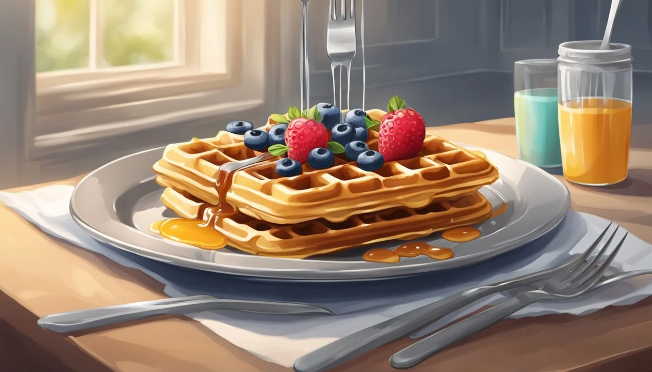 In the art of perfecting breakfast and brunch favorites, waffles remain a quintessential dish. Serving them requires a balance of technique and personal preference, especially when incorporating syrup. The standard guideline suggests using 2-3 ounces or roughly 1⁄4 cup of syrup for a short stack or one large waffle, respectively. Patrons should pour syrup in a controlled fashion, starting at the center and creating a spiral, ensuring even distribution.