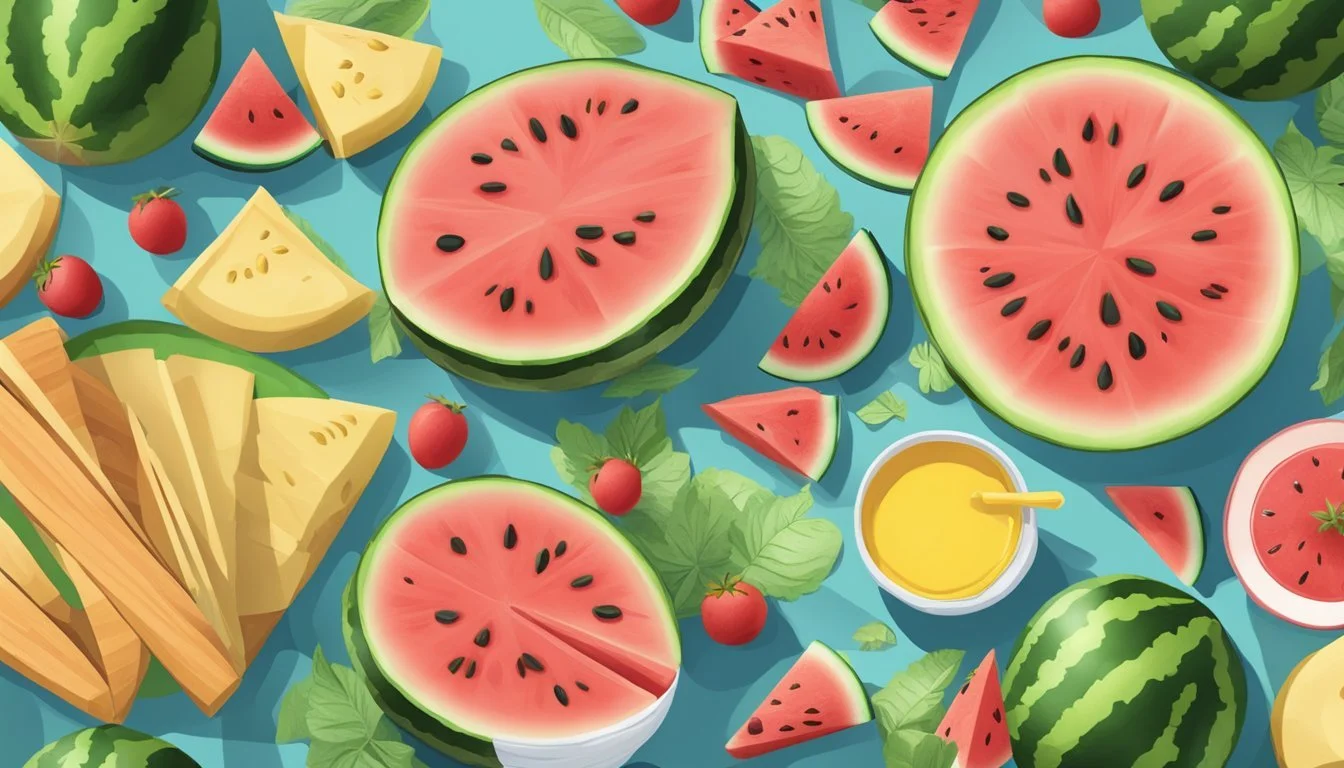 Watermelon and Cheese: A surprising yet delicious combination involves pairing watermelon with rich cheeses. For a snack or appetizer, skewer bite-sized pieces of watermelon, a rich cheese like Parmesan, and arugula for a simple yet sophisticated treat.