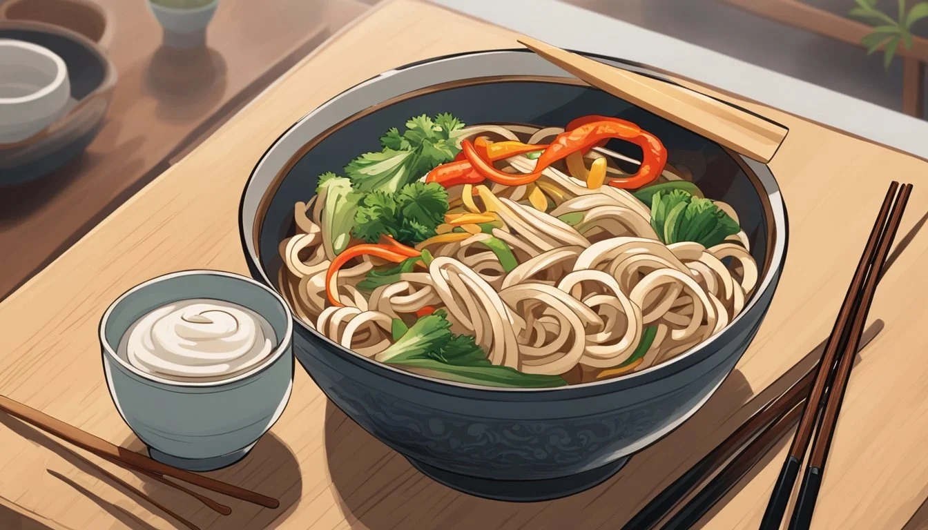 When storing leftovers, it's crucial to transfer the udon stir fry to an airtight container as soon as it cools down to room temperature. This preserves the freshness and prevents the noodles from becoming too soft or soggy. If the udon stir fry contains green onions, one might consider storing them separately to retain their crisp texture. For reheating, a quick stint in a skillet on medium-high heat revitalizes the flavors and restores the slight crispness to the noodles.