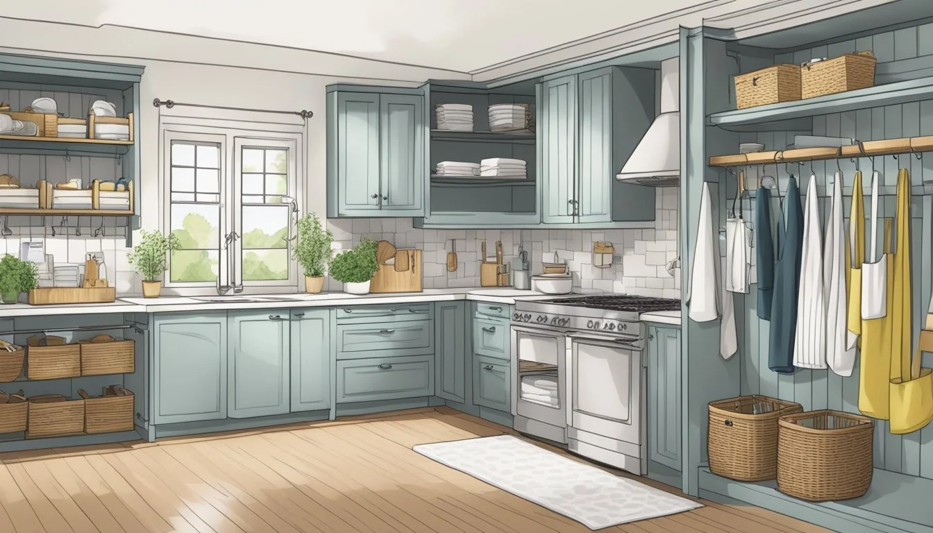 Innovative storage solutions have materialized that transform the quintessential way kitchen linens are organized. Whether one is employing clever cabinet accessories such as shelf liners and dividers or repurposing furniture pieces like storage benches for dual function, these methods promote order and accessibility. Bearing in mind the value of maximizing underused spaces, options like over-the-door racks and internal drawer systems present inventive avenues to keep linens neatly stored.
