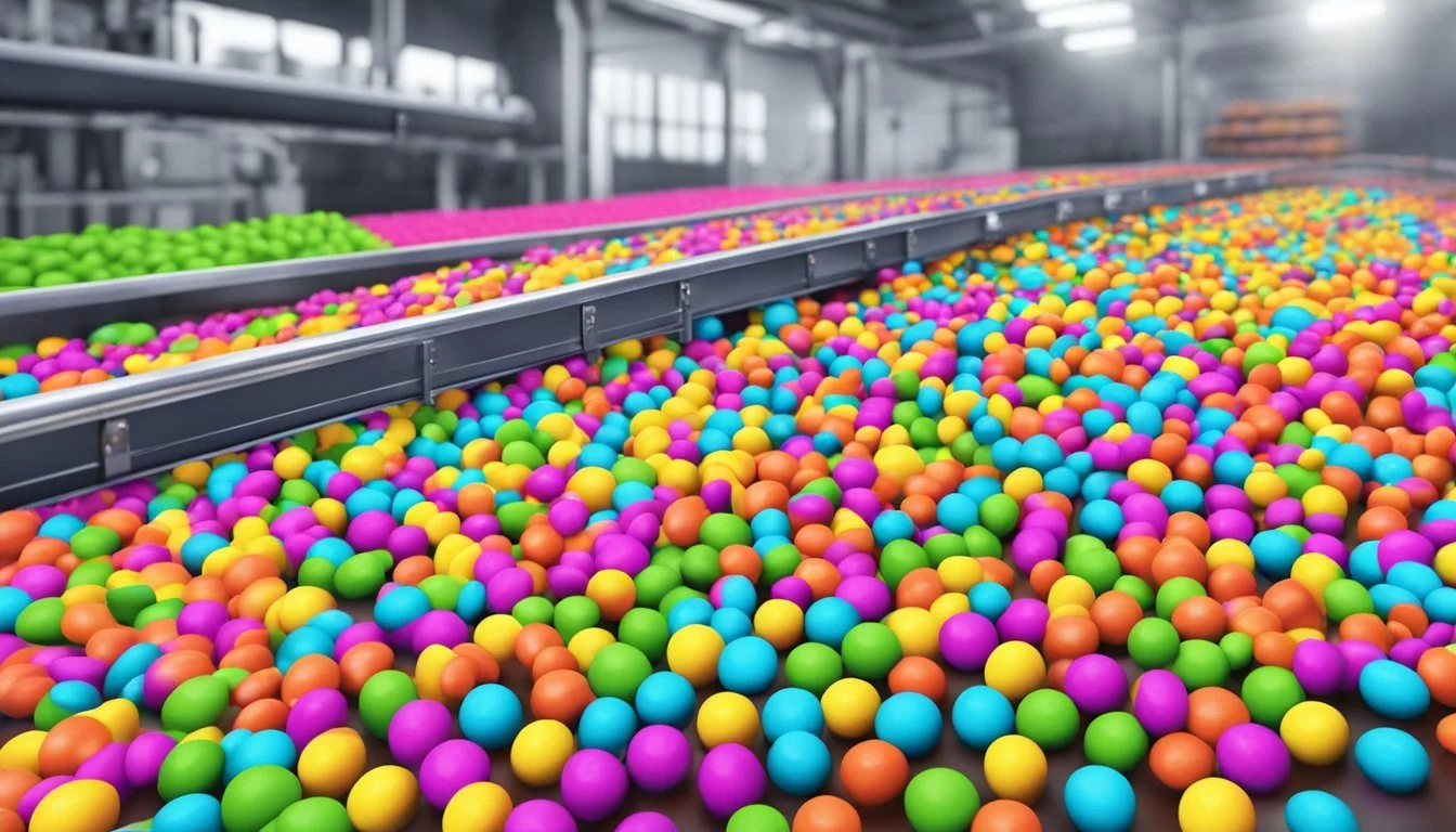 Formation of Layers: In the case of Gobstoppers, the formation of the candy involves the application of successive, flavored sugar layers over a central core. This layering occurs in large rotating pans that tumble the candies, allowing for even coating during each application.
