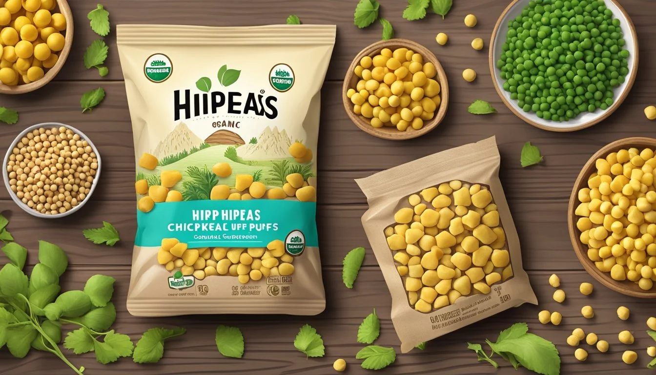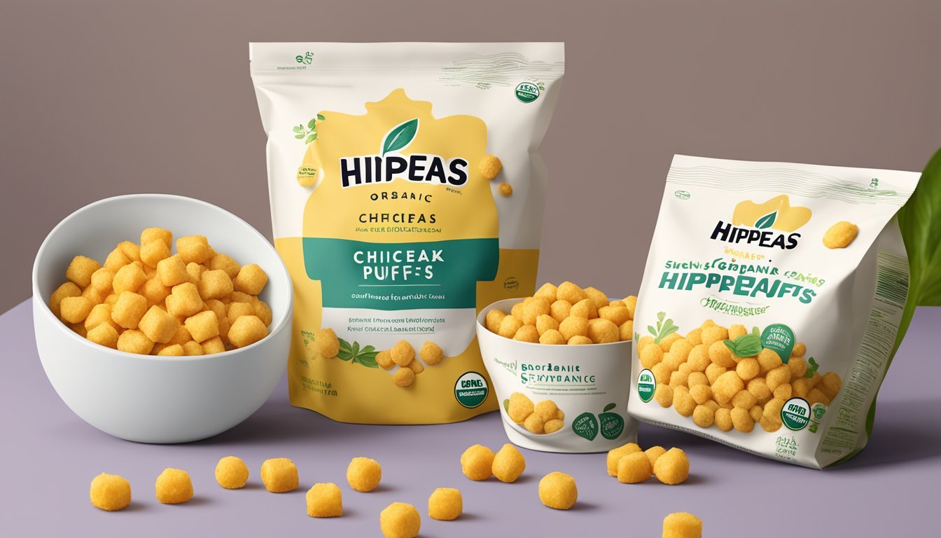 Hippeas Organic Chickpea Puffs come in specific packaging designed to maintain freshness and flavor. The packaging prominently features the branding and necessary nutritional information, serving sizes, and ingredients.