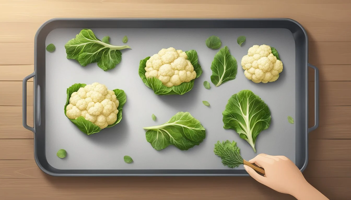 When seasoning, simplicity is often best to highlight the cauliflower's natural flavors. Sea salt and ground black pepper are recommended for a classic taste, but feel free to include a variety of herbs and seasonings for a more personalized snack. After sprinkling the seasonings, the leaves are ready to be baked into golden, crispy chips.